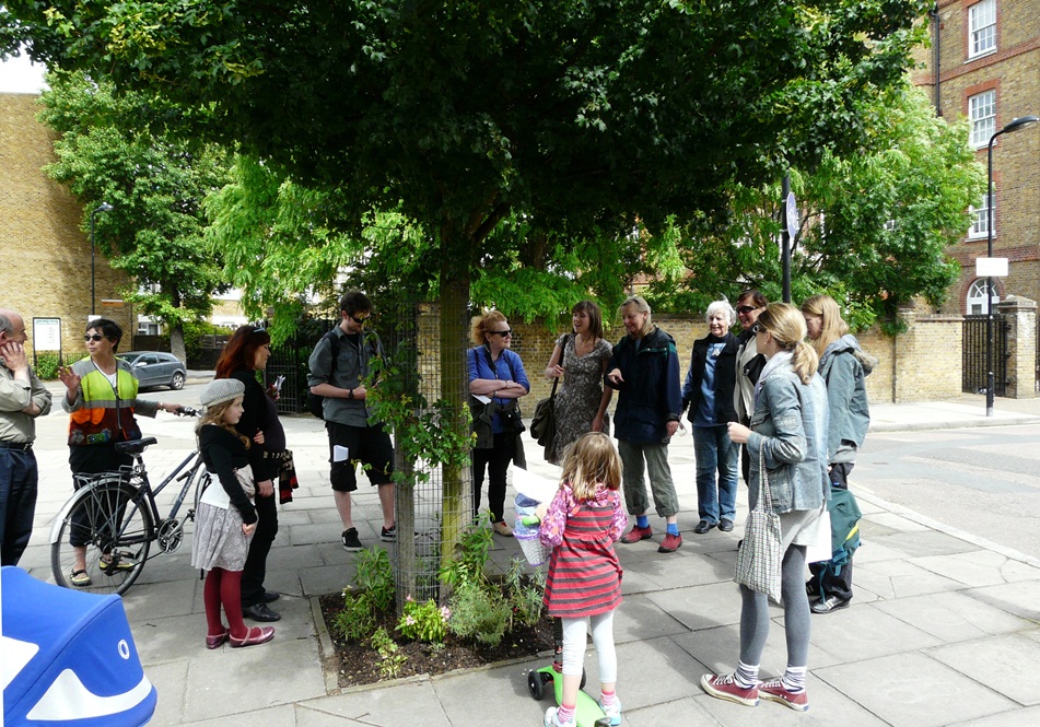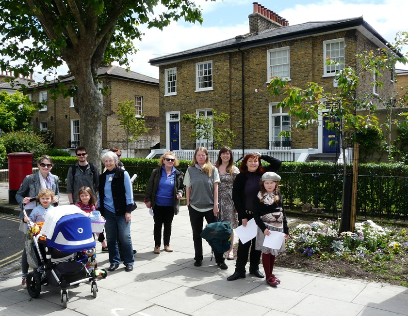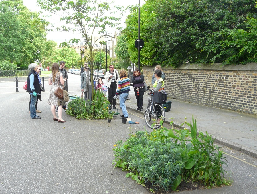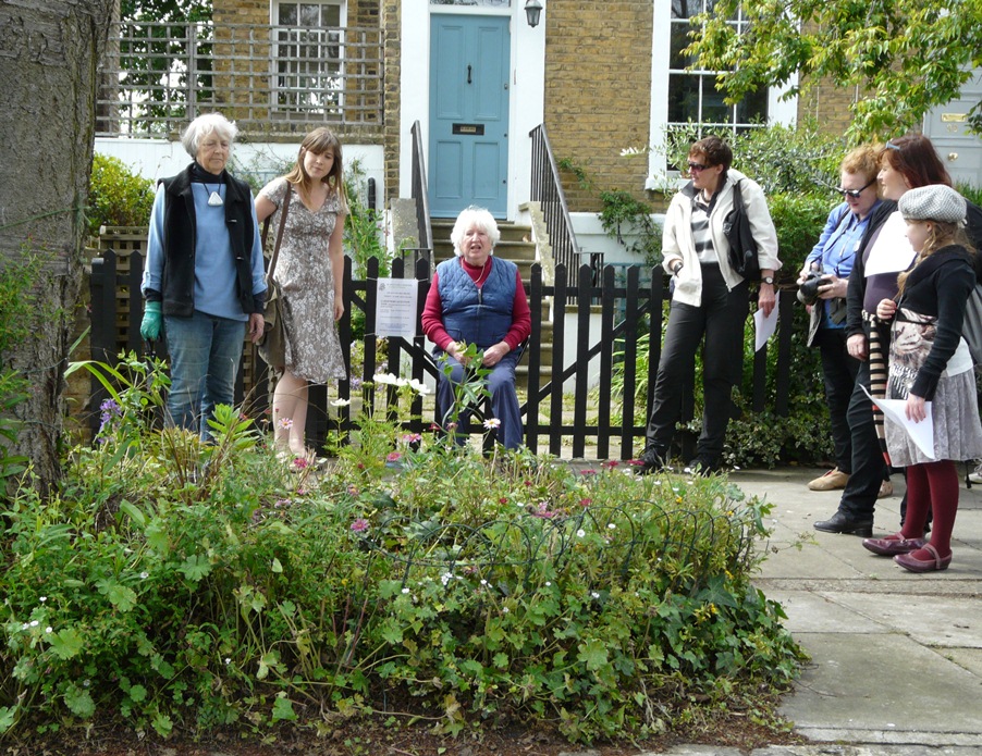 Stephen has kindly sent us some photographs of Saturday’s tour of the Chelsea Fringe sites – congratulations to everyone involved. Early Sunday morning when the sun was fleetingly shining the smell of the flowers at the end of Northchurch was wonderful! The tour was organised by Miranda Janatka and Diana Weir who have both put so much work and effort into the DBG Chelsea Fringe event.