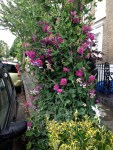 Choose plants of varying heights and hopefully find some that aren’t too demanding of water. Remember the WOW factor: beds at the end of the street ‘set the scene’ and strong colour at a bed’s inner corners can be seen when looking down the street. Climbing plants again soften the appearance of the bed (nothing too dense as that makes inspection difficult for the Urban Forestry Team, who may have to remove the plant): clematis, honeysuckle, perennial sweet pea. Remember granular or liquid feeding: watering in Tomorite occasionally is helpful.