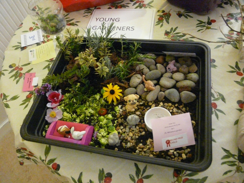 Maggie Hendrick won the Rose Bowl for the most prizes in Flowers / Fruit and veg, Annie Blackmore won the Silver Tankard for the most prize winners in Domestic Delights, Edie Ramsay (Age 12) won Best in Show for her miniature garden.