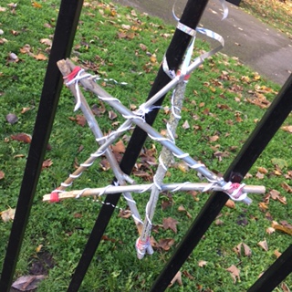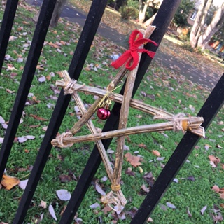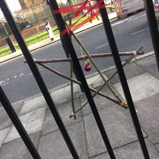 Saturday morning brought a bit of sunshine which was very welcome for the little group that gathered at Rainbow Park (Ufton Gardens) to make and hang twig stars. All thanks to Cec who had the idea and made loads of stars as well as donating decorations and putting together kits to make up on the day. There’s still plenty of time to hang your own star and they will stay up for the whole of December.