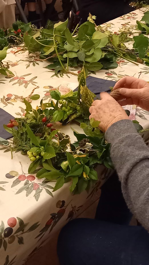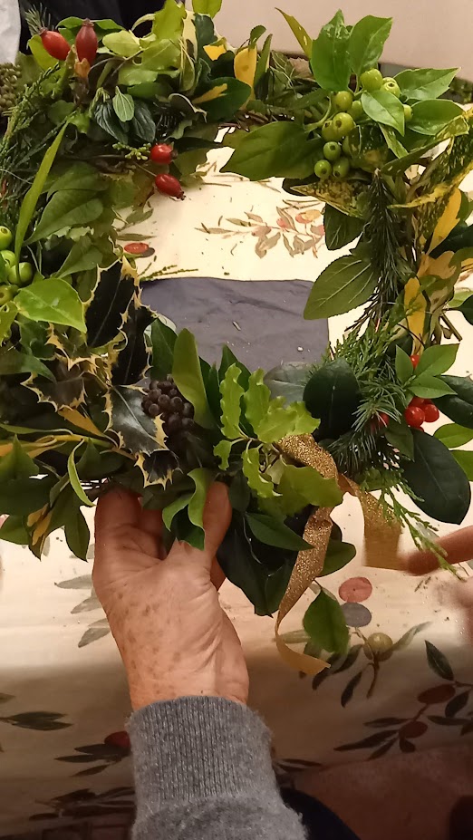 I always think that the winter solstice marks the end of the gardening year… from now on the days get longer and buds of new growth begin to appear. It all starts again like magic and we can plan what to grow, move, prune or fell in the new year. I’ve raided the garden to fill my home with evergreens, berries and seedheads for the festive season and this has reminded me to share some of the lovely wreath pics taken by Alison Benjamin and Lynn Brooks at our December meeting.