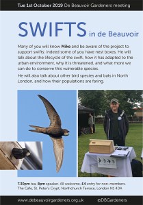 Many of you will know Mike and be aware of the project to support swifts: indeed some of you have nest boxes. He will talk about the lifecycle of the swift, how it has adapted to the urban environment, why it is