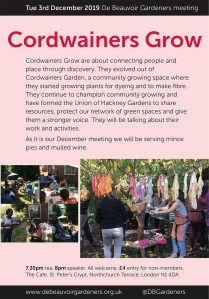 Debbie and Kate from Cordwainers Grow gave us an inspirational talk about community gardening and the impact that it can have on people’s wellbeing and mental health.