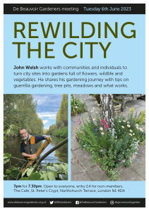 Meetings are free to members (details of how to join can be found here). Non-members are very welcome at our meetings at the Crypt – a charge of £4 is made to cover costs (sometimes £5 if there is wine). Our Crypt programme is also open to members of Islington Gardeners at a charge of £2 per meeting. Any additional charges for events are listed below.