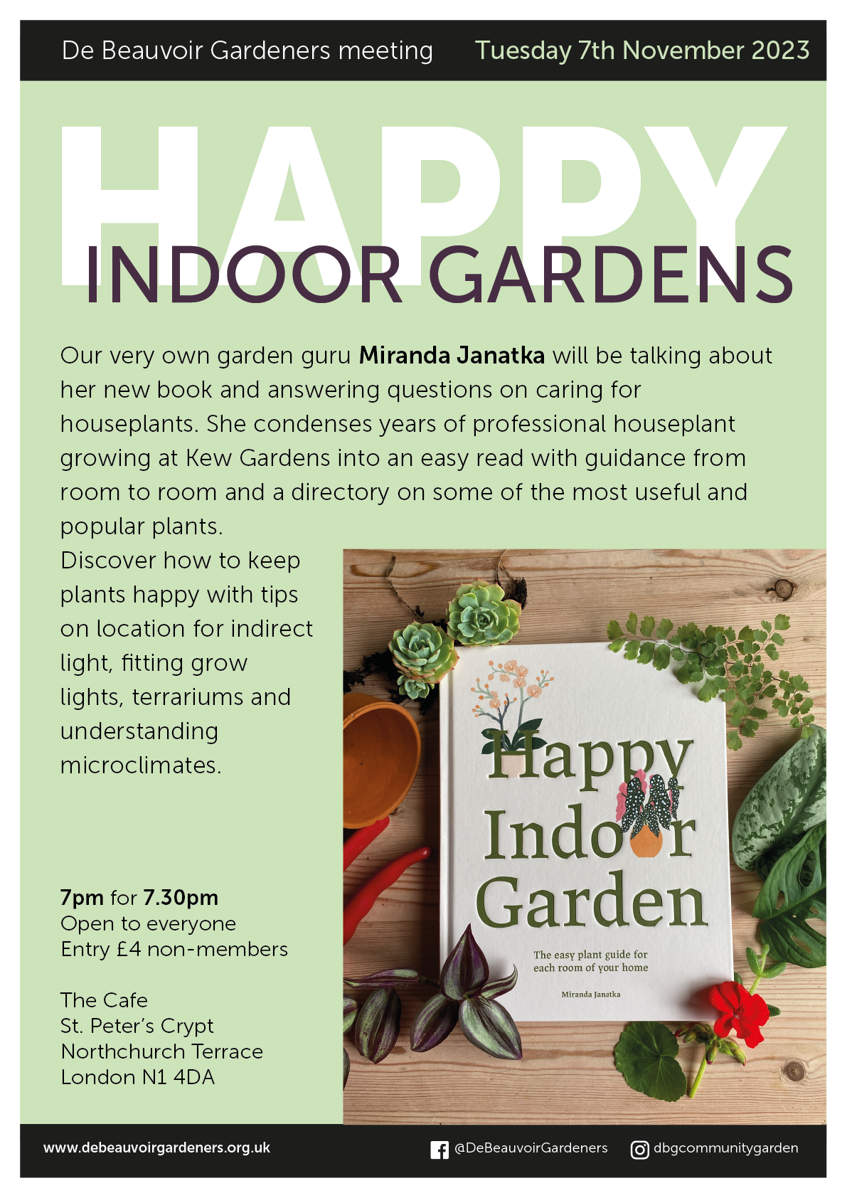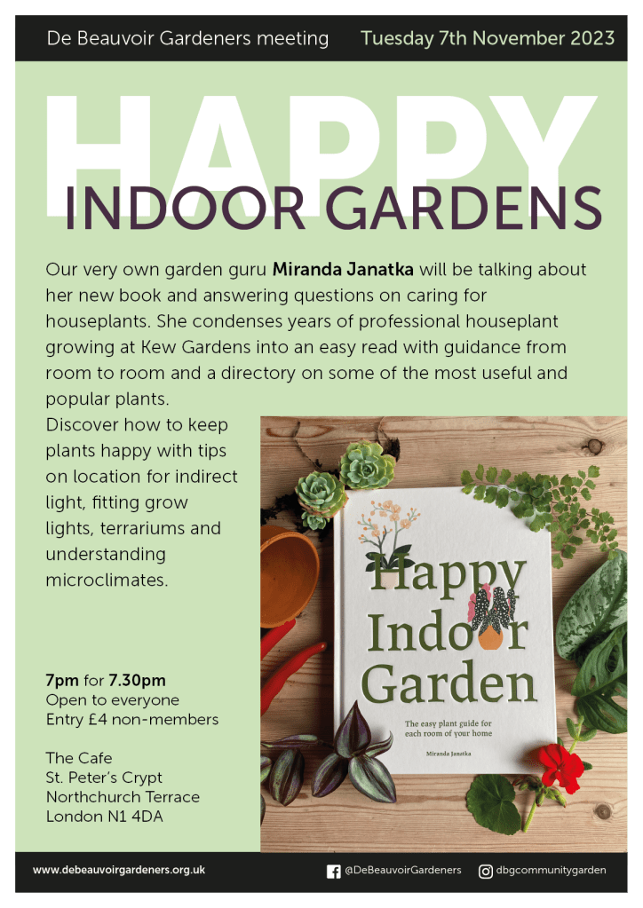 Miranda Janatka, honorary member and author of A FLOWER A DAY will be introduces her latest book, HAPPY INDOOR GARDEN.