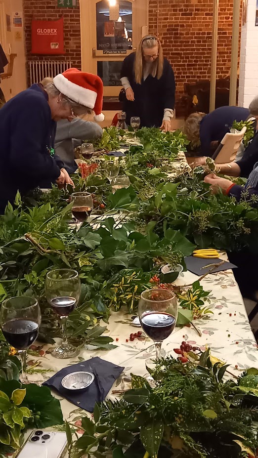 Our wonderful wreath workshop with mulled wine and mince pies is open to members plus one guest each. Bring your own decorations but greenery, ribbon and wire are supplied. Free for members but wreath rings will be charged at £1 each and guest entry is £10 to include a wreath ring.