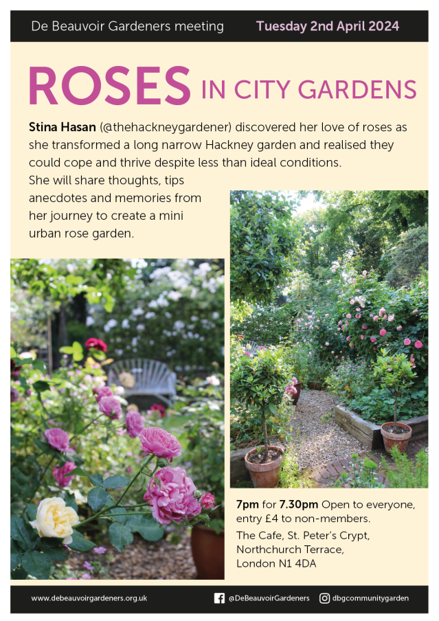 Swedish fashion designer and garden lover Stina Hasan gives a talk about roses and her garden as featured on her beautiful instagram feed – The Hackney Gardener.