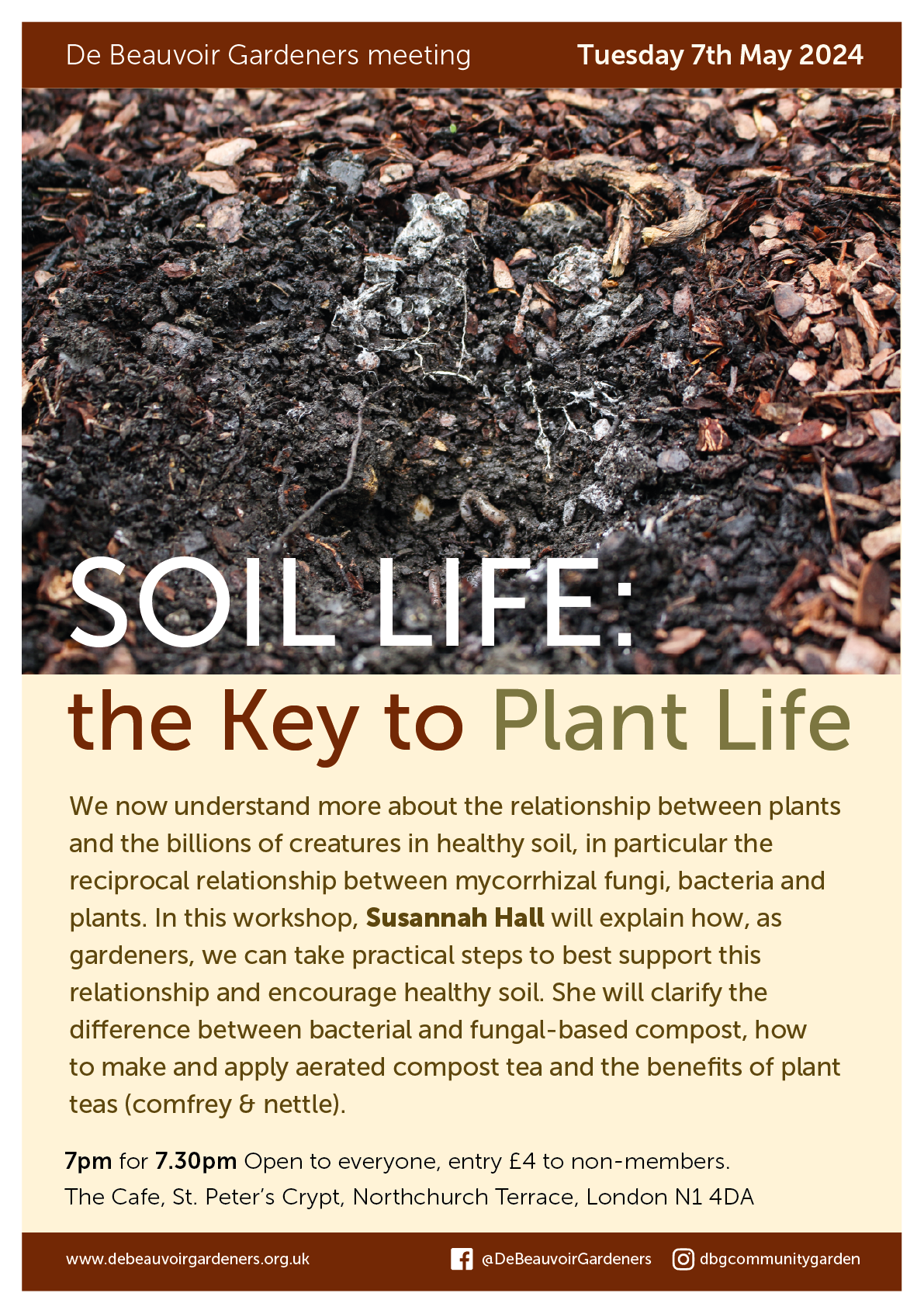 Susannah Hall from Permablitz London will be talking about soil life as the key to growing success.