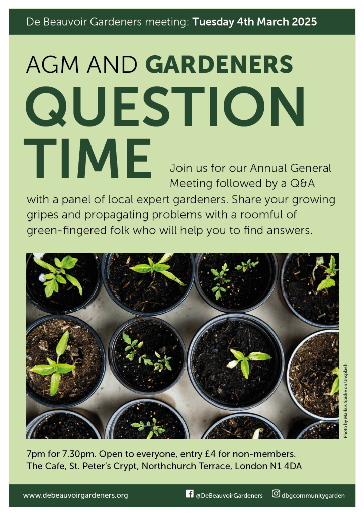 Our Annual General Meeting will be followed by our very own version of Gardeners Question Time. There will be a panel but with so many wonderful gardeners amongst our members all questions are also open to the floor for answers and advice. This is always a fascinating evening.