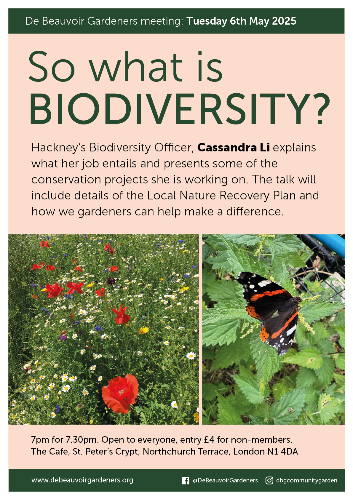 Cassandra Li, Hackney Council’s biodiversity officer will explain her role to us and help us understand exactly what biodiversity means for the urban gardener.